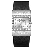A bold plaque style that makes a statement! This watch features a crystal bezel accentuated on either side by a silver G by Guess engraved plaque and black leather strap. -33mm -Water resistant -10 year limited warranty Women's Accessories > Watches > Leather.