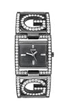 Mineral CrystalStainless Steel Case/BraceletBlack-Ion PlatingBlack dial with silver tone hands and markersSwarovski Crystal accents bezel and front bandRemovable Links for easy self-sizingJapanese MovementComes with original GUESS box