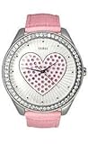 Polished silver case with crystals and textured silver dial with light pink crystal heart design and pink croco strap. Crystallized with Swarovski®. Genuine leather. 10-year limited warranty.