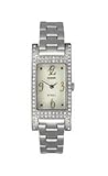 Polished stainless steel case with crystals and genuine mother-of-pearl dial with polished stainless steel bracelet. Crystallized with Swarovski®. 10-year limited warranty.