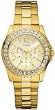 Multifunction: Day, Date, 24 Hour/Intl. time 37/37/13 Gold-tone + Crystal Case Soft White Dial Gold-tone Steel Bracelet 50 M/165 FT Water Resistant Women's Accessories > Watches > All Guess Watches.