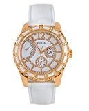 Multifunction: Day, Date, 24 Hour/Intl. time 41 x 41 x 14 Rose gold-tone, crystal, white case Enamel White, rose gold-tone, crystal dial White Croco-grain Leather strap 100 M/330 FT 10 Year Limited Warranty Women's Accessories > Watches > All Guess Watches.
