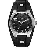 A cool cuff for the guy that's always on the go. Featuring a silver-tone case with a black dial on a black leather cuff, this style is perfect for day or night. 44mm Water resistant 10 year limited warranty Men's Accessories > Watches > Leather