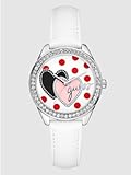 Analog Dimensions in mm: 37/37/11 Silvertone + Crystal case White, Black, Pink, Red, Silvertone + Crystal Dial White Leather strap Waterpro Water Resistant 10 Year Limited Warranty Women's Accessories > Watches > Guess Watches