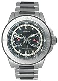 Quartz movement, Dress watch, Polished silver-tone hands and markers with luminous accents, Grey numbers, Small yellow markers, Black indices, Brushed stainless steel silver-tone bezel with a black ion plated outer ring and engraved markers, Luminous dot marker, Brushed stainless steel silver-tone case and crown, screw-in caseback, 100 meters/330 feet water resistant