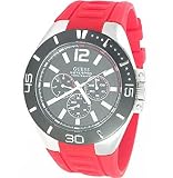 The 40mm black dial creates a fantastic appearance on this sleek, stylish watch. The red band helps to bring the look together for something that is sure to catch the eye. The analog display features a high quality quartz movement which is backed by the full manufacturer warranty. This watch is made of stainless steel case and rubber strap and is water resistant to 100m.
