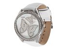 He passes you every day on campus. You caught his eye today and he smiled. Smiling back, your heart leapt into your throat. You could swear the gorgeous butterflies from this sparkling GUESS® watch fluttered right into your stomach. High-polish stainless steel case. Genuine leather band with buckle closure. Three-hand analog quartz movement. Dial face features crystal-embellished butterflies. Dazzling crystals adorn perimeter of case front. Water resistant. Case Height: 44 5 8 mm ; Case Width: 44 5 8 mm ; Case Depth: 11 2 7 mm ; Band Width: 3 4 in ; Band Circumference/Length: 8 3 4 in ; Weight: 2 1 4 oz