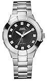 Your time to shine. This GUESS WaterPro watch can be worn in the shower or while swimming. Stainless steel bracelet and mixed metal case. Black patterned dial with diamond accent a 12 o'clock and reflecting metal indexes. Three hands. Quartz movement. Water resistant to 100 meters. Ten-year limited warranty.
