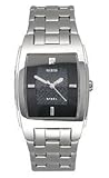 Polished silver stainless steel case with textured sunray black dial with genuine diamond and brushed/polished silver stainless steel bracelet. 10-year limited warranty.
