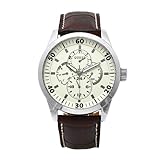 - Large, beige, multifunction dial; Day, date, month, and 24-hour subdials; Luminescent hands