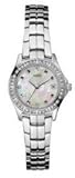 A great find for yourself or for a loved one. This exquisite timepiece has a radiant Mother of Pearl dial and Swarovski crystal bezel. WaterPro metal bracelet and case. Water-resistant to 330 feet. This chic timepiece exudes elegance. Silver tone bracelet. Stainless steel case. Crystal encrusted bezel. Crystallized by Swarovski Mother of pearl dial with three hand movement and date window. Clasp closure. Self-adjustable links. Dimensions: Face 26mm W x 26mm H Face Depth 8mm Band Width 12mm Band Circumference 7.5 inches