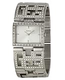 Stainless steel case with a polished stainless steel bracelet set with crystals. Fixed stainless steel bezel set with crystals. Silver dial with silver-tone hands and silver-tone stick markers at the quarter hour positions. Quartz movement. Scratch resistant mineral crystal. Solid case back. Case diameter: 30.8 mm. Case thickness: 9.7 mm. Jewelry clasp. Water resistant at 30 meters / 100 feet. Guess G-Link Fab Ladies Watch W13544L1.