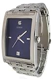 Perfect for a black tie or any affair. Stainless steel rectangular case and bracelet. Striking blue dial with diamond markers. Three-hand, quartz movement. Ten-year limited warranty.