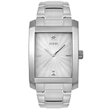 Quartz movement; Silver-tone hands and indexes; Genuine diamond hour markers; Steel accent at 6 oclock; Polished stainless steel bezel; crown; case and caseback; Water resistant Case Width in cm 3.5 Band Color Brushed stainless steel bracelet with polished accents and a push-button deployment buckle Case Color Polished stainless steel case; Silver-tone textured diamond dial Face Height in cm 2.9.