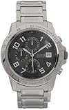 Look phenomenal in this dashingly versatile GUESS men's watch. Three-hand chronograph quartz movement with three sub-dials and a date display window.