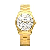 This beautiful timepiece by Guess for ladies offers an all goldtone stainless steel case and bracelet. The mother of pearl multifunctional dial includes day, date, and 24-hour subdials, as well as luminescent hands. The classic watch features a precise Japanese quartz movement, and is protected by a scratch-resistant mineral crystal as well as a water-resistance level of up to 30 meters.