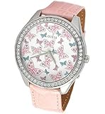 One look at this pretty watch and your heart will flutter like a butterfly! Stainless steel case. Croco-embossed leather band with buckle closure. Swarovski crystal bezel with glitter butterfly design on dial. Three-hand analog quartz movement. Water resistant to 50 meters.